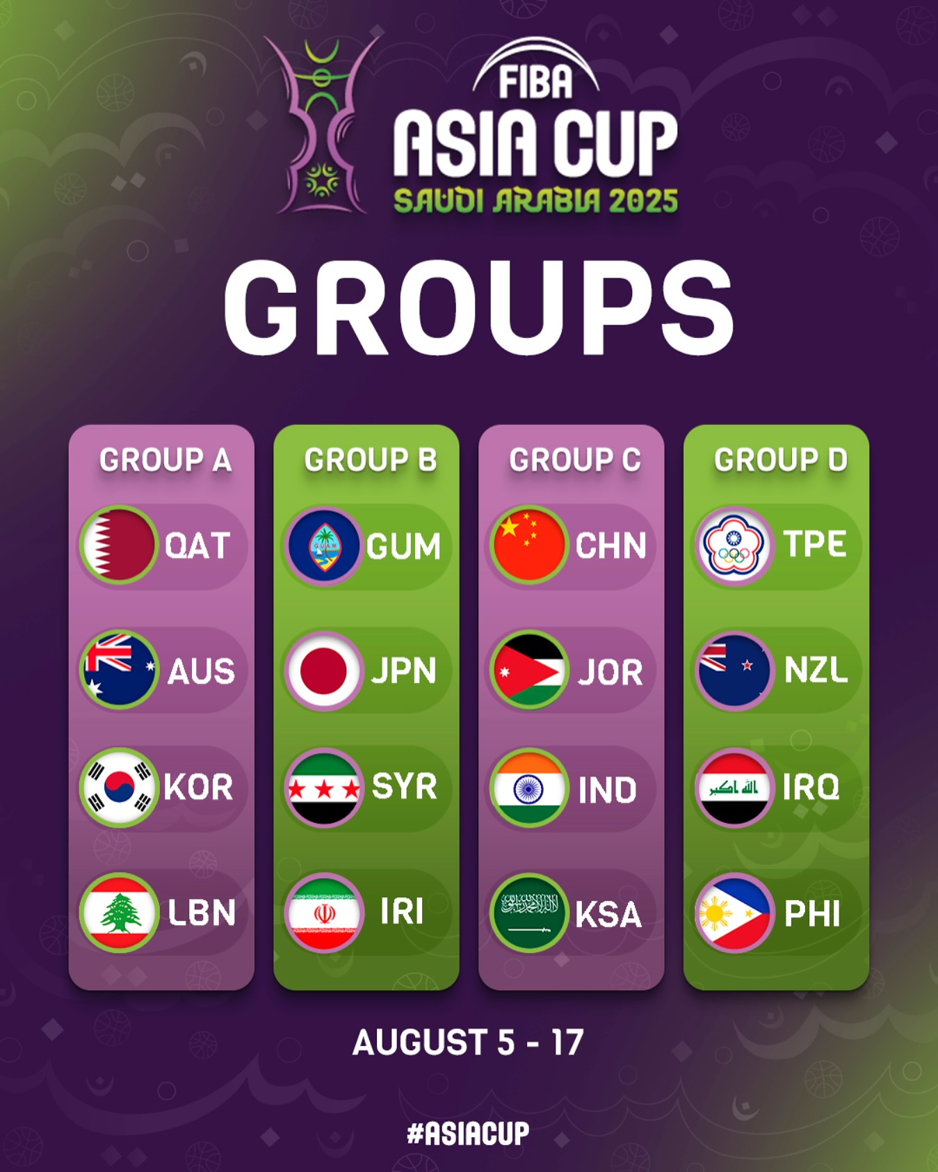 相关阅读>>2025男篮亚洲杯分组出炉:🇨🇳中国男篮和沙特/约旦/印度同组